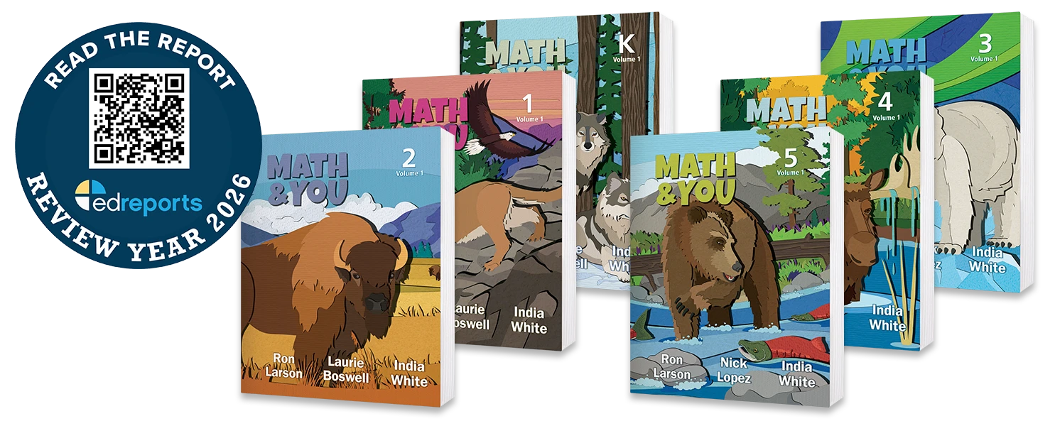 Math & YOU K–8 earned all-green ratings from EdReports, meeting expectations across all review gateways, including focus and coherence, rigor and mathematical practices, and teacher and student supports.
